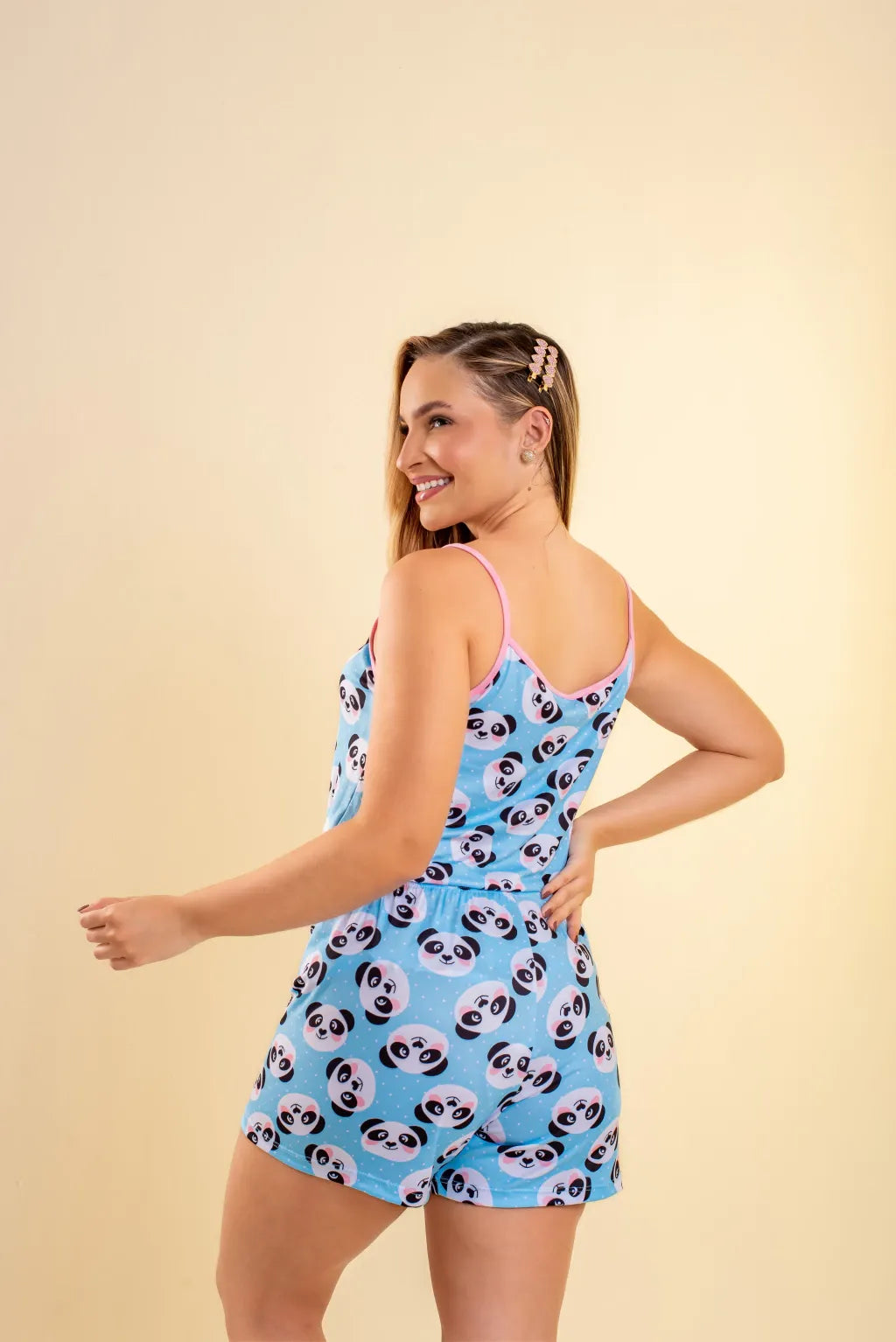 Blusa de alça. Short com elástico na cintura extremamente confortável.