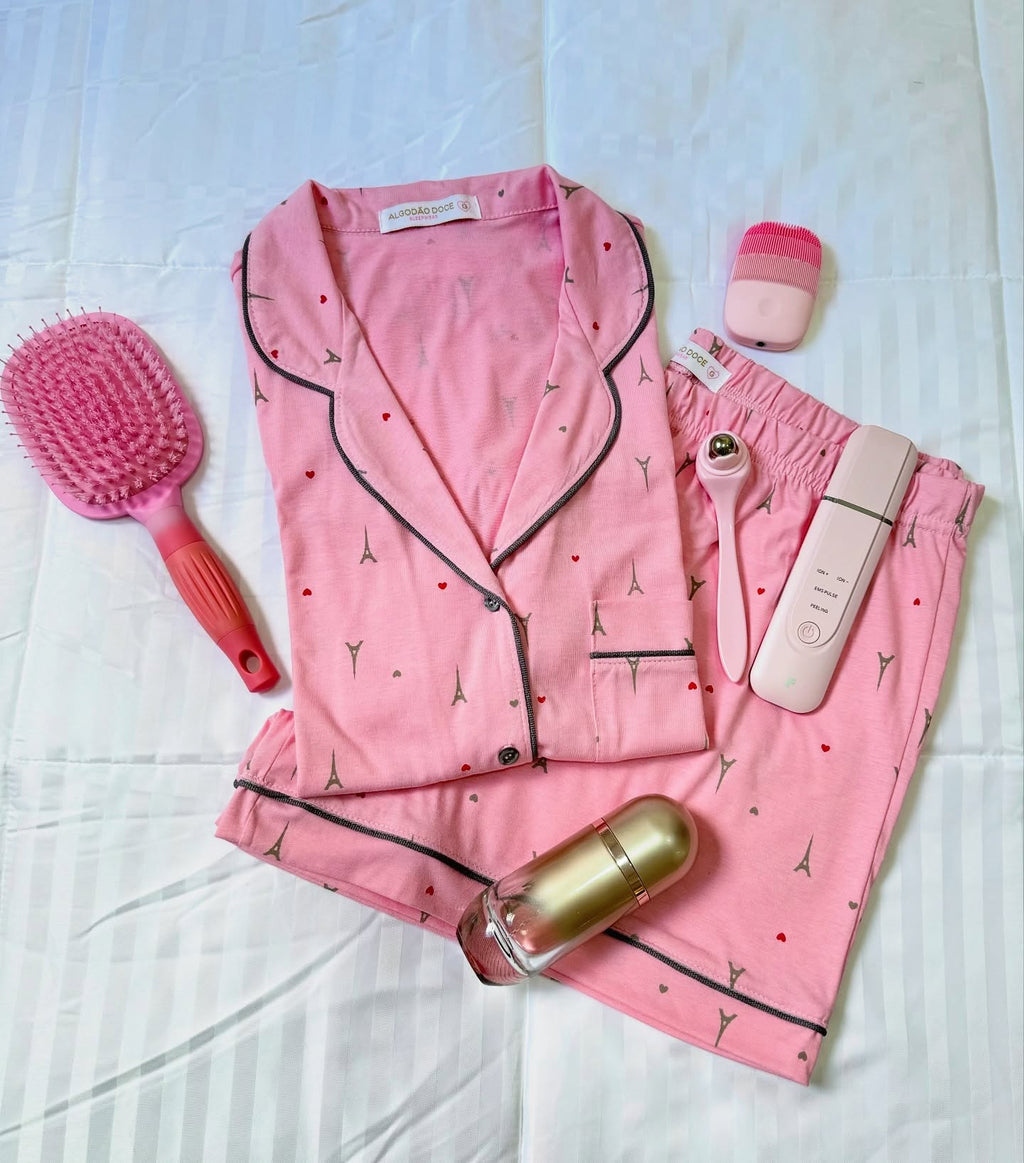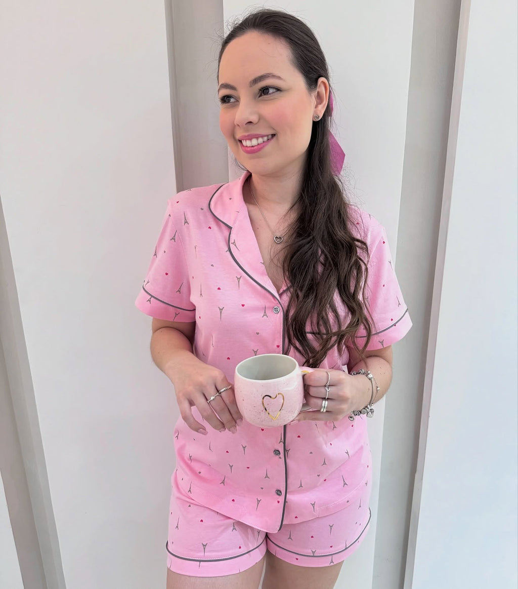 Pijama americano confeccionado em suede toque macio e aveludado, com elasticidade que acompanha o movimento do seu corpo.